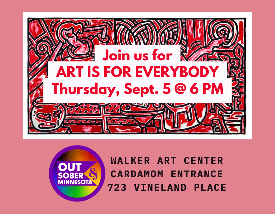 Keith Haring was a voice in the 2SLGBTQ+ during the AIDS crisis but has continued to inspire generations of Queer people, especially Queer people in recovery! Join us for a casual stroll through the Walker Art Center’s “Art is for Everybody” on the last day of its exhibit!