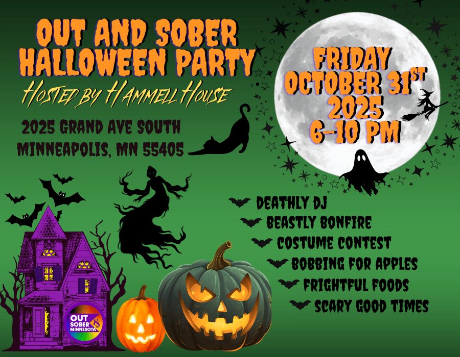 Grab your costumes and your cauldrons, your besties and your broomsticks! It’s the second annual Halloween Party thrown by Out and Sober and hosted by Hammell House, located at: